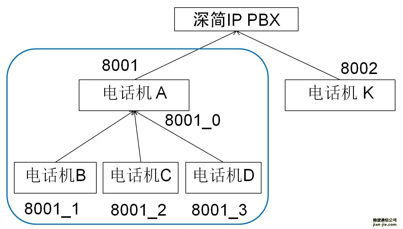 2.办公电话,多个电话机共享一个分机号码,一般是大老板的办公室会用到。