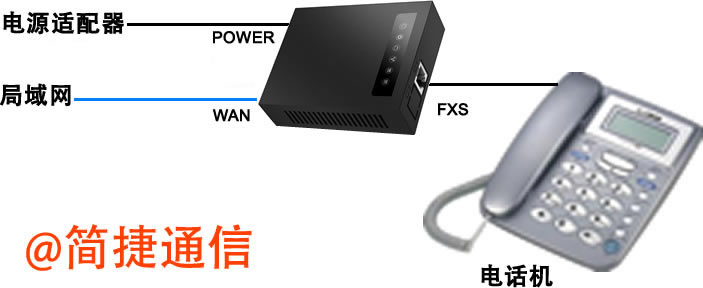 简捷ATA Gateway模拟电话适配器是单口FXS语音网关。ATA的意思是Analog Telephone Adapter,通过与模拟电话机、传真机、会议电话机、无绳电话机等连接,帮助用户低成本扩展模拟设备,实现访问网络电话服务。