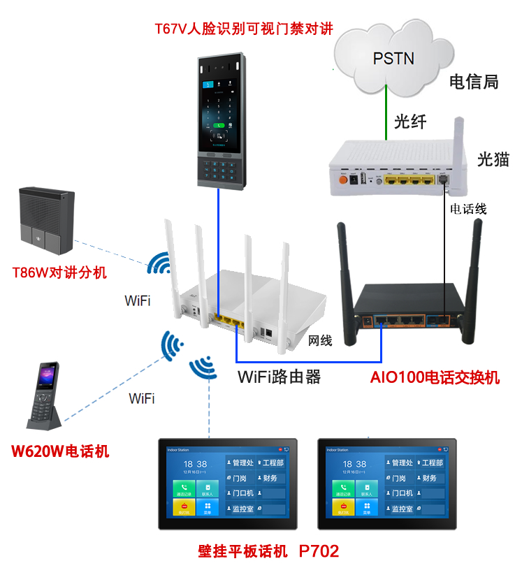T67V人脸识别视频门禁对讲SIP组网示意图