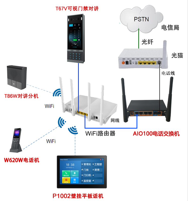 P1002室内分机的组网方式: