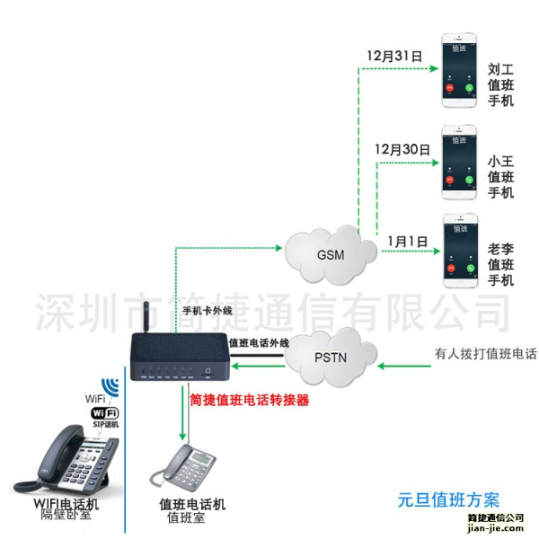 值班电话转接器的工作流程是这样的,老客户应该比较熟悉: