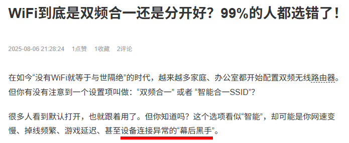 问题或许藏在路由器的双频合一功能里关掉“双频合一”功能!后续有教程~